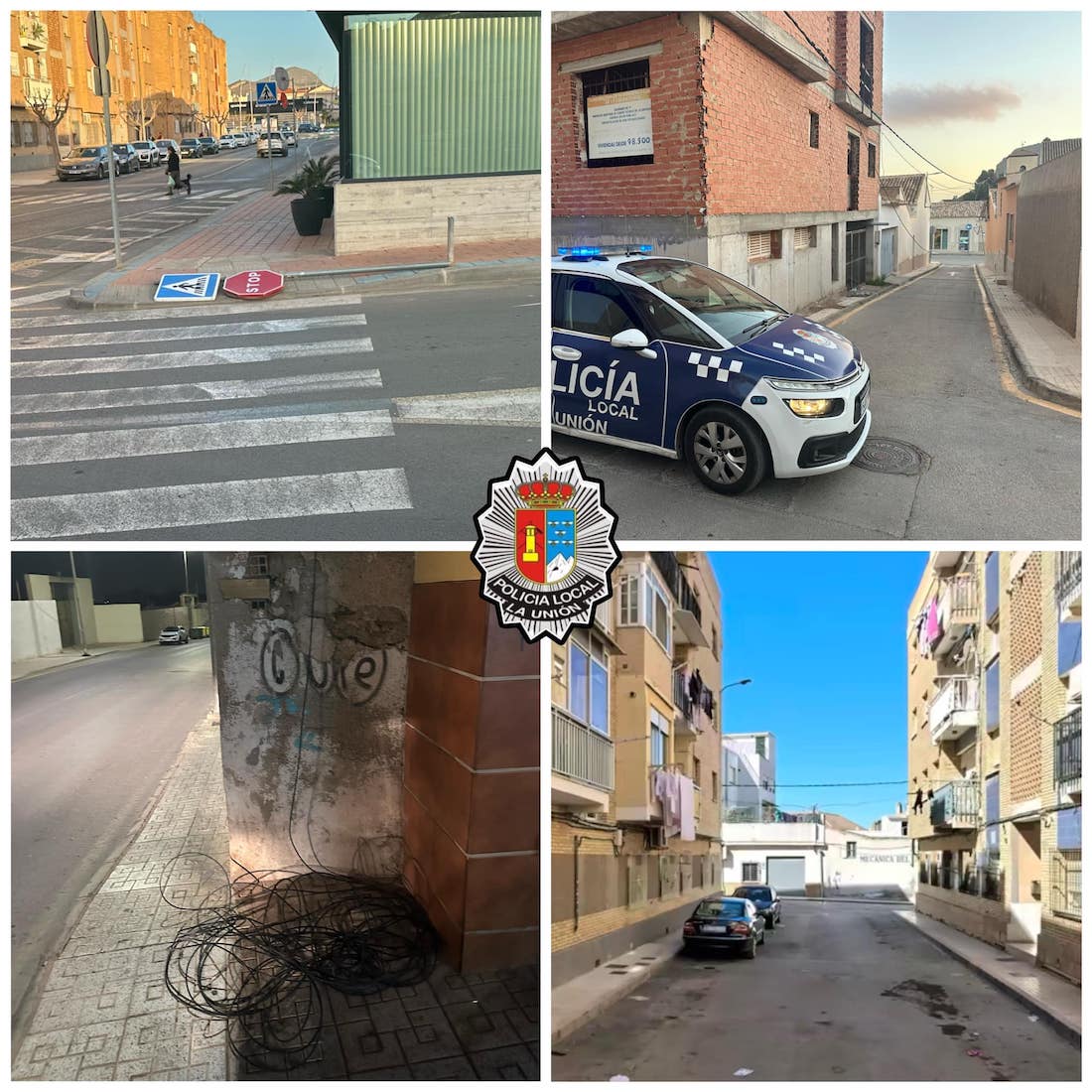 Las fuertes rachas de viento de la jornada de ayer provocaron en La Unión tres caídas de cables y una de señal de tráfico, informa la Policía Local.