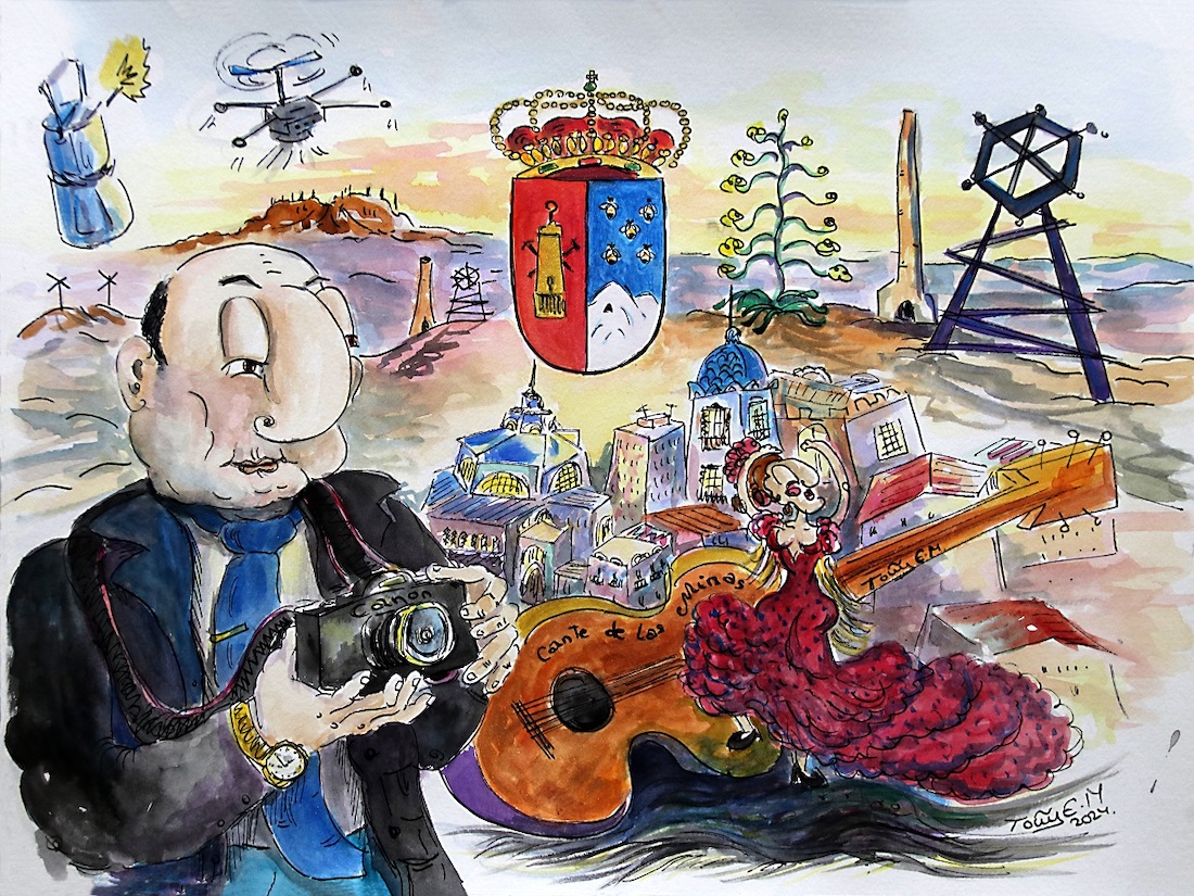 "Mi agradecimiento a la artista unionense Antonia Esther Martínez (Toñi) por este grandísimo regalo hacia mi persona y esta preciosidad de obra artísica personalizada del 'Divo - Web Ciudad del Cante', donde has dejado plasmado toda la esencia, y realizado con mucho cariño y afecto. Muchas gracias también al artífice de esta preciosa sorpresa inesperada que he recibido en un momento personal crítico, del que no tengo palabras de agradecimiento: Antonio Meroño Clemente 'Fotógrafo Jayam".