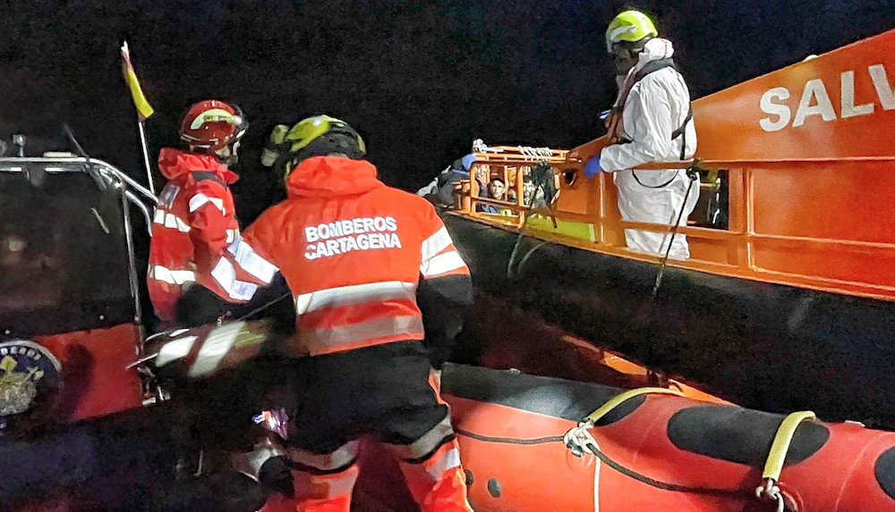 Funcionarios municipales de Bomberos también llevaron a cabo un rescate por mar esta pasada madrugada del jueves, sobre la una y media. Fueron requeridos para acudir en una embarcación ligera a la zona de Punta Negra, cerca de Portmán. En este lugar se encontraban en tierra ocho hombres migrantes. Fueron evacuados de la zona por Bomberos, para después embarcar en un barco de Salvamento Marítimo de mayor tamaño, que los llevó hasta el puerto de Santa Lucía (Cartagena). Los rescatados tenían la ropa seca y estaban en buen estado aparente.