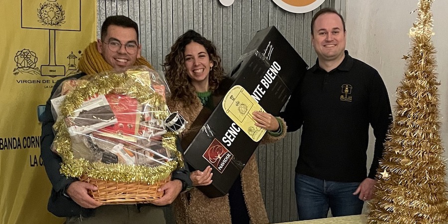 La banda de cornetas y tambores Virgen de la Caridad ha hecho entrega de los jamones y cestas navideñas que ha sorteado con la venta de papeletas cuya recaudación tiene como destino ayudar al grupo musical. Entre los premiados de este año hay una familia que ya lleva tres premios desde que surgió este sorteo en 2015.