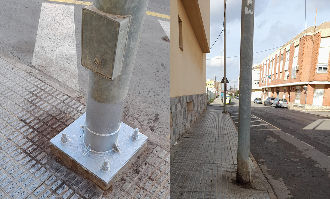 Un vecino denunció en nuestro 'Buzón de los lectores' a principios de enero la situación de varias farolas de la calle Virgen del Carmen y de Carrera de Irún que están en un mal (y peligroso) estado por la corrosión sufrida, especialmente, por la orina de perros. Después informó de una reposición, que ahora son dos, aunque apunta que todavía queda la que está peor, "pues le falta un trozo de la base", apunta