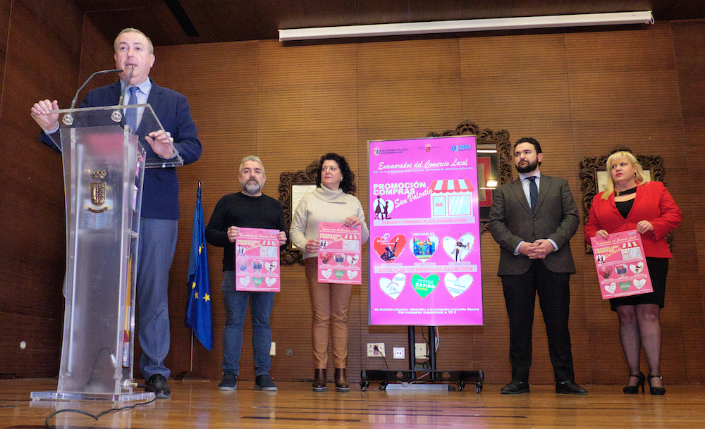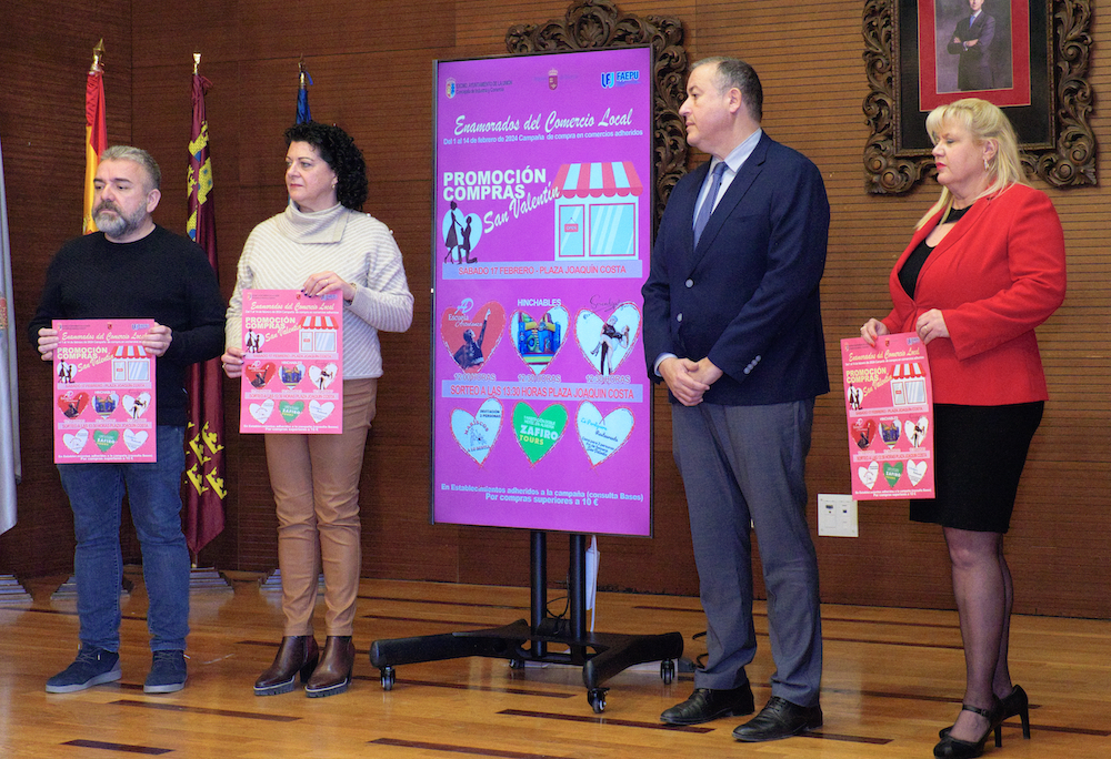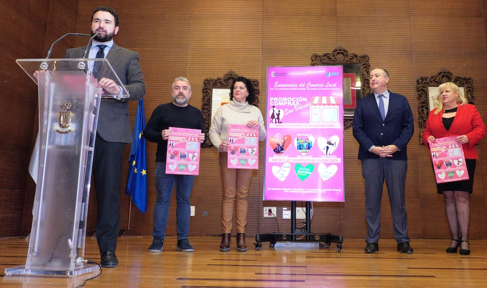 Hoy se ha activado una iniciativa que, organizada por el Ayuntamiento y el gobierno regional en colaboración con FAEPU, pretende promover y dinamizar el comercio local durante las fechas previas a 'San Valentín', motivando a los vecinos a consumir en los 32 establecimientos adheridos, donde los que hagan compras superiores a 10 euros tendrá opciones de ganar una noche de hotel, una comida o una cena, siempre para dos personas.