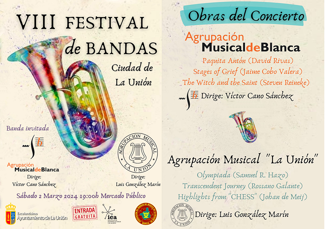 La octava edición recupera la celebración de un encuentro musical 'Ciudad de La Unión' que no se celebra desde 2019, pues al año siguiente tuvo que ser suspendida por la irrupción de la pandemia del coronavirus. En esta ocasión será la banda de la Agrupación Musical de Blanca la que compartirá escenario con la anfitriona Agrupación Musical La Unión. El concierto comenzará a las 19 horas en el Mercado Público, siendo la entrada gratuita.