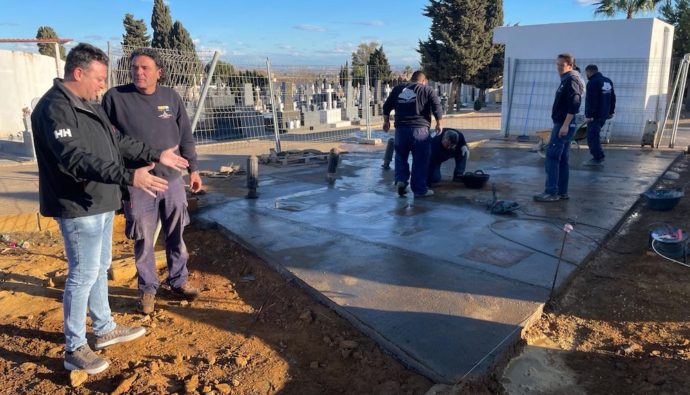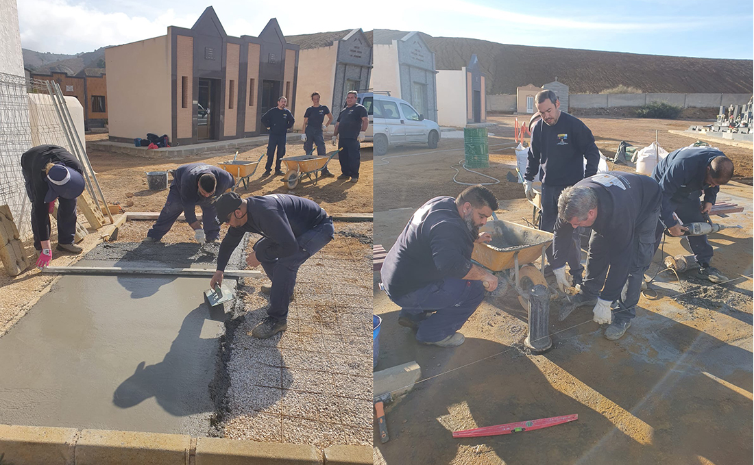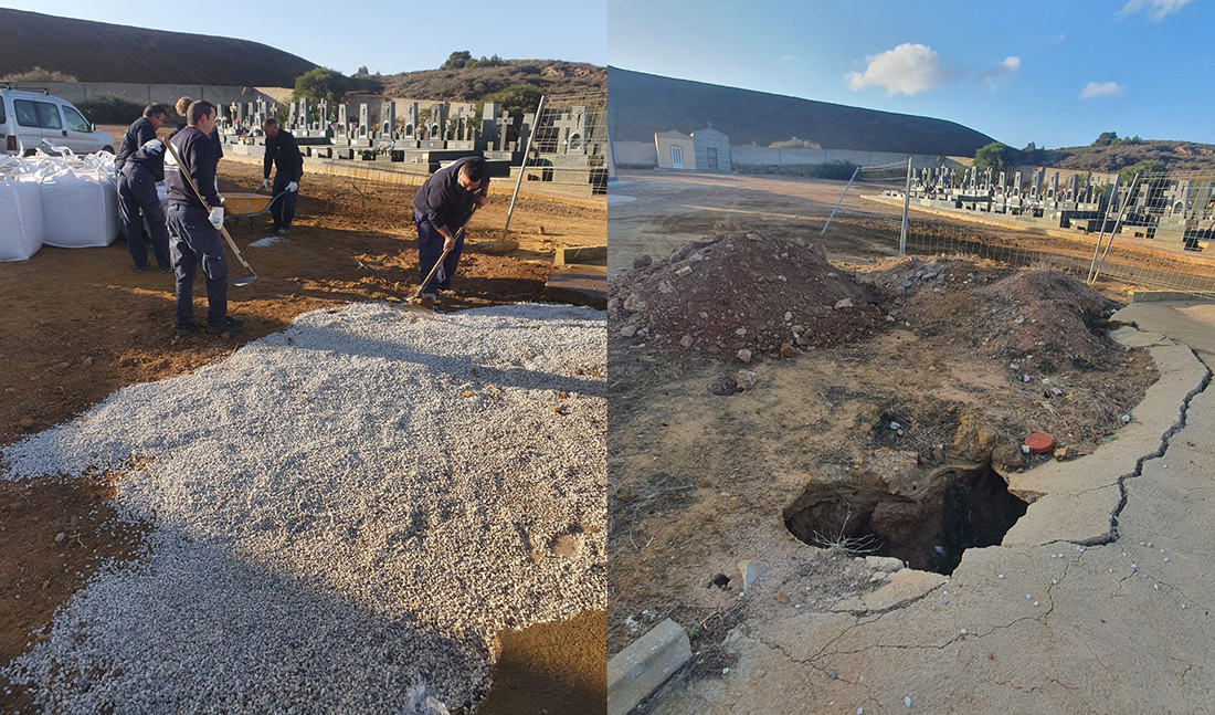 Entre los trabajos realizados, se han llevado a cabo diferentes actuaciones en el cementerio de La Unión, como es el arreglo del peligroso socavón que había en su entorno, a través de la compactación de terreno mediante camiones de zahorra y pala mixta para vibrado del terreno, extensión de dos metros cuadrados de grava y colocación de mallazo y hormigonado de 15 centímetros de grosor con láminas de pizarra.