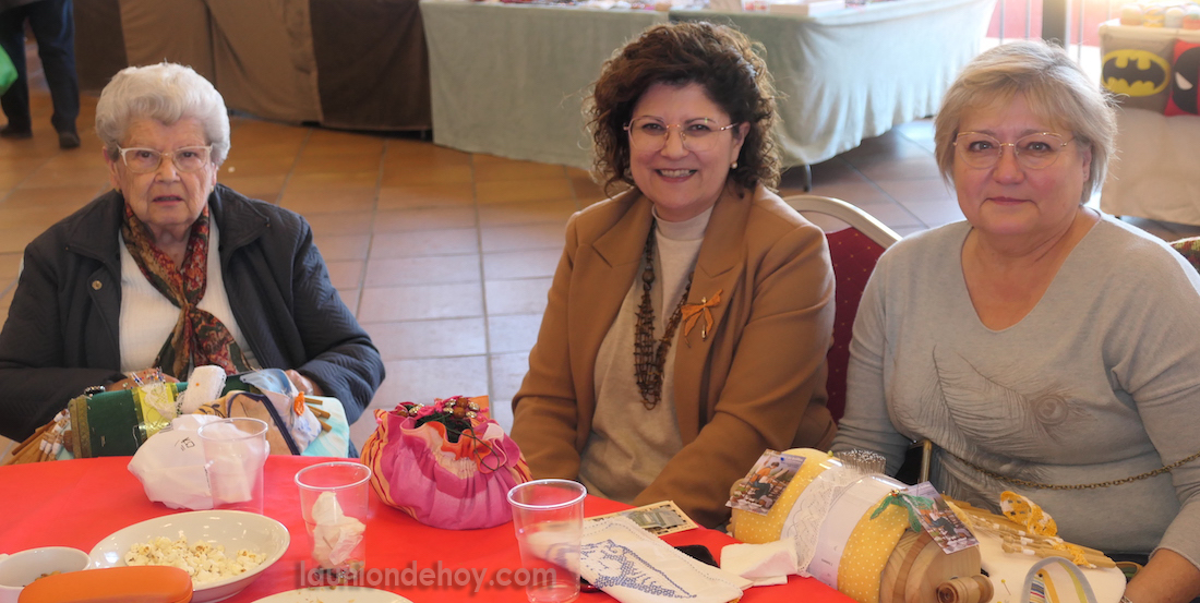 Tres mujeres de la asociación de La Unión que participaron el pasado domingo en el XV encuentro de bolillo organizado por el colectivo 'Vértice' de San José Obrero (Cartagena) que se celebró en el salón de celebraciones unionense La Cartuja.