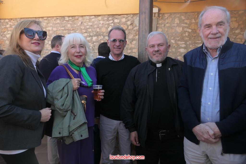 Tomás Martínez Pagán fue quien congregó 'a coste sero' a tan amplio plantel, el cual se quiere que divulgue este negocio por la comarca, tanto como venir en pareja como para hacerlo en familia, grupo de amigos o gran celebración. El sano 'agitador social' de ambos municipios también aprovechó para lanzar una frase con mucha profundidad al referirse que había reunido a gente de diversos puntos de las comarcas de Cartagena y del Mar Menor. "El día que todos decidan juntarse e ir adelante de la mano será un gran día". También se dirigió a los presentes Teo Campillo, de la 'bestial marca', quien agradeció la buena respuesta a la llamada. Después, el sacerdote Lázaro Gomariz llevó a cabo la bendición del 'bendito marisco' y demás alimentos.