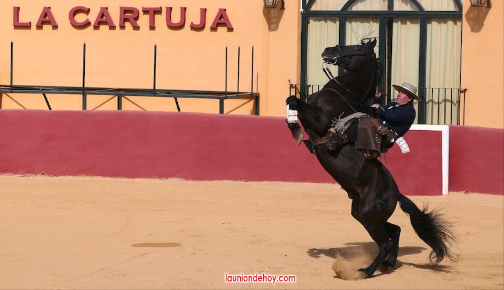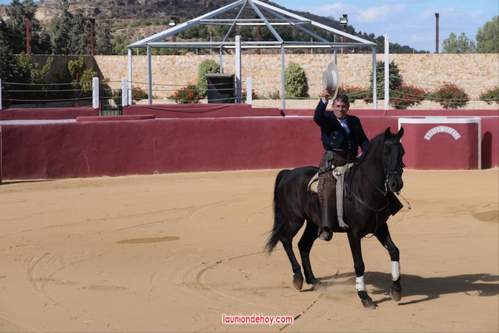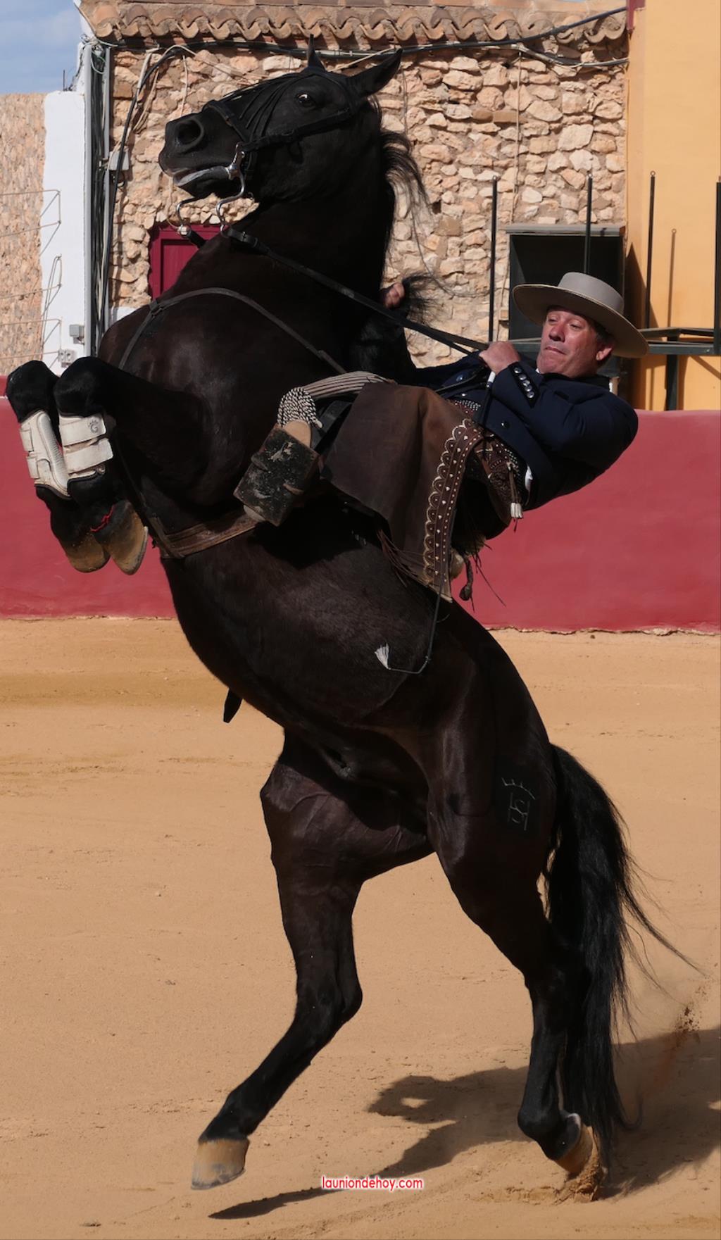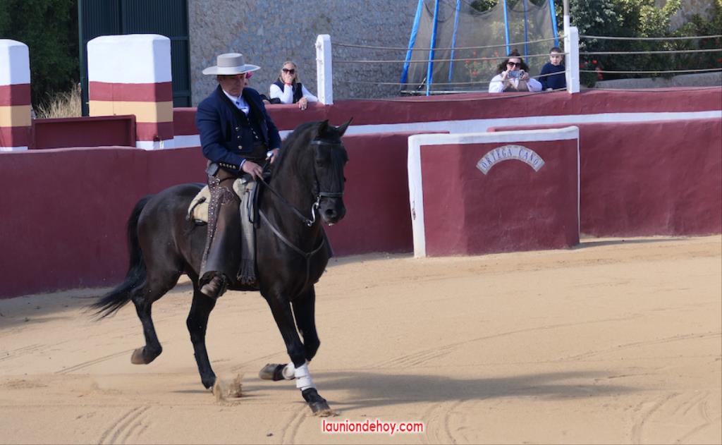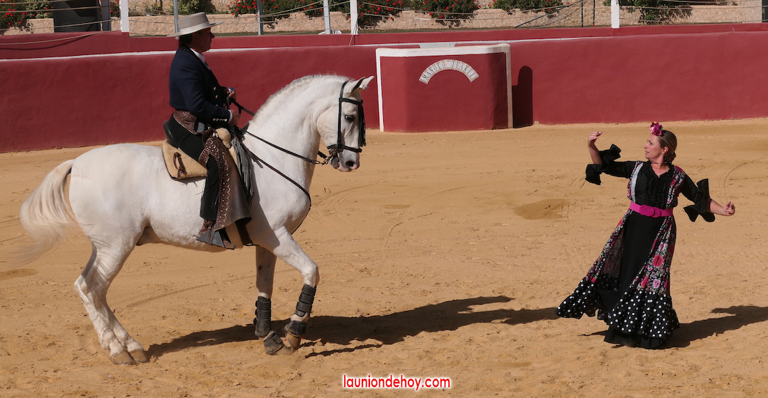 Vamos a la puesta en escena, que, en este caso, comenzó antes de acceder al comedor, pues en el coso taurino hubo una actuación del jinete Pencho Solano, que después se enriqueció con un baile andaluz entre su caballo y su esposa con vestuario de faralai. Una gran ensalada es el epicentro de las mesas, en las que hay paelleras vacías que pronto son cubiertas por el marisco (bogavante, gamba, langostino, almeja y cangrejo) que son depositadas por la pala que las recoge por la popular carretilla, un símbolo de esta franquicia, y que tiene pequeñas réplicas de plástico para el pan sobre las mesas. Luego vendrá la quisquilla, la carne a la piedra y los postres, siempre con espectáculo, apareciendo el personal con ritmo llevando las bandejas mientras suenan muy populares canciones españolas. Otro detalle es servir el vino blanco en maleta de fumigar. El servicio, incluida la recogida de platos o renovación de paneras, funcionó muy bien, sin demoras.