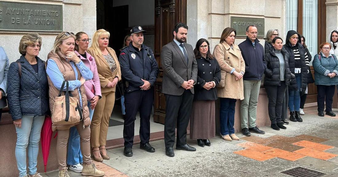 La fachada del Ayuntamiento de La Unión ha acogido esta mañana un minuto de silencio en memoria de los diez fallecidos por el desvastador incendio que tuvo lugar en un edificio de Valencia y para mostrar todo el apoyo unionense y pesar a sus familias.