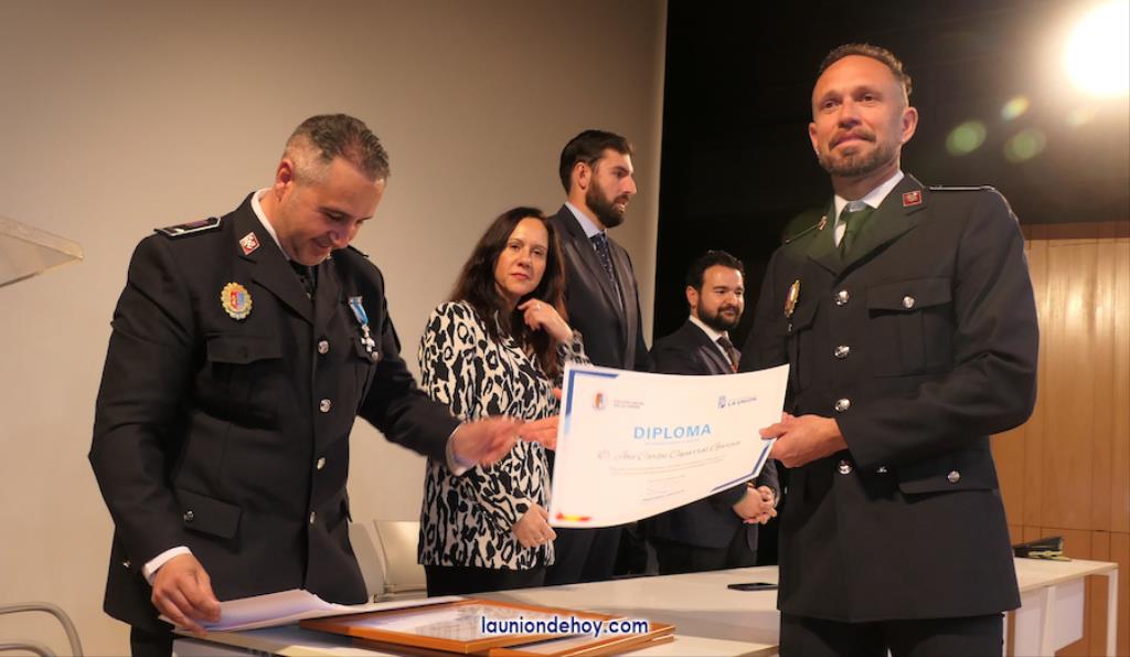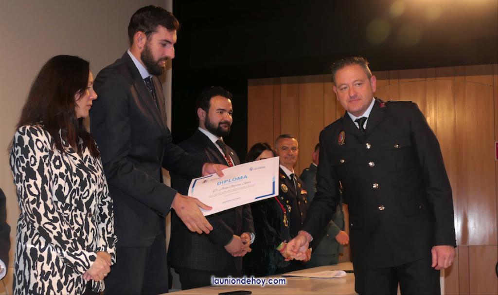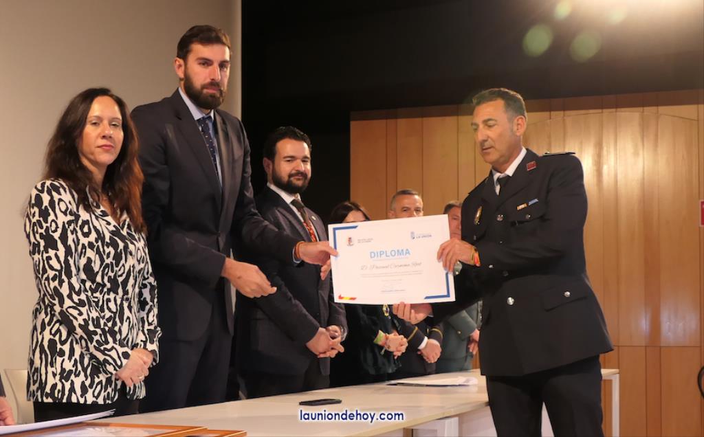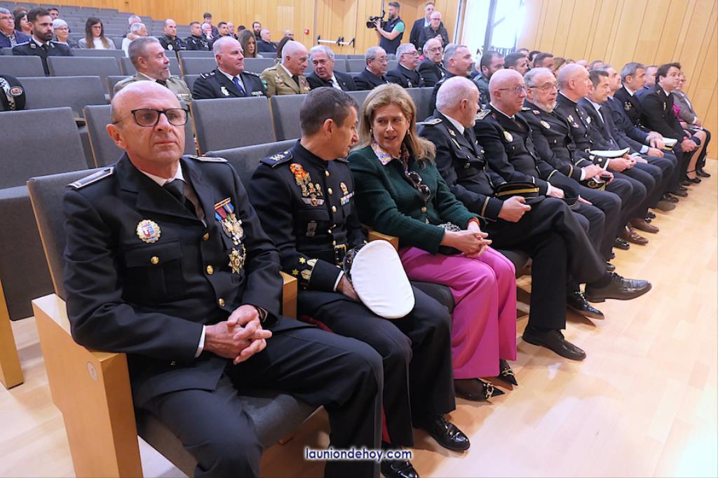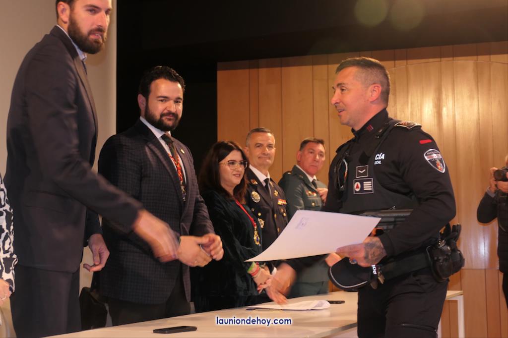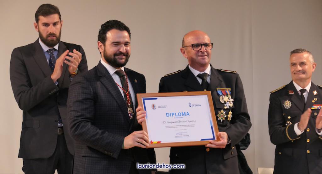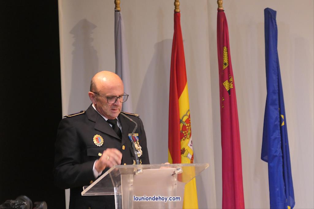 Además, se ha entregado distinción al jefe de la Agrupación de Voluntarios de Protección Civil, Víctor Bélmez y al funcionario Facundo Sáez. Tras la entrega de esos dos diplomas, se ha llevado a cabo el nombramiento de 'Comisario jefe de honor' a Fulgencio García Cegarra, siendo la edil de seguridad ciudadana, Isabel Egea, quien ha leído la propuesta que fue llevada (y aprobado) al pleno municipal.