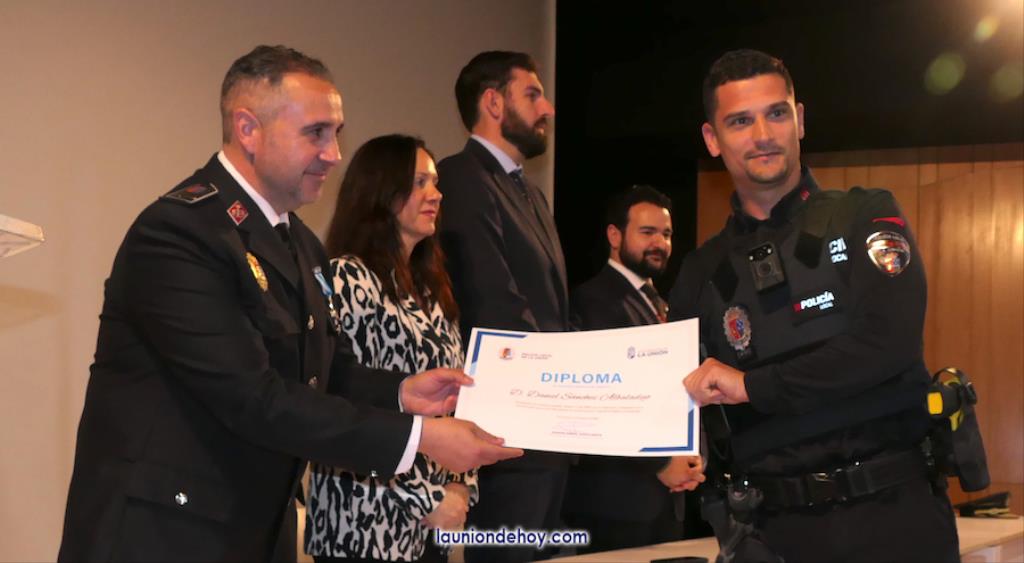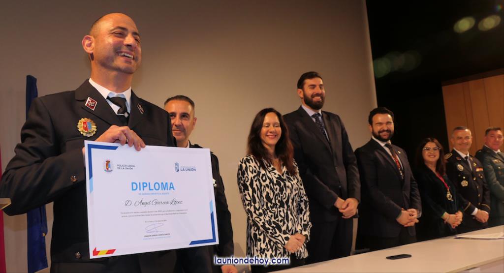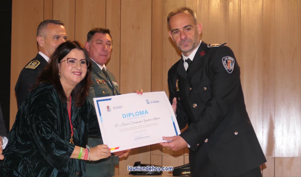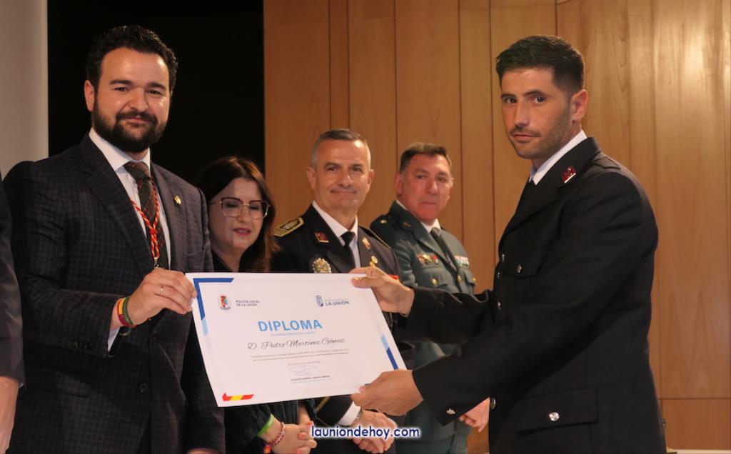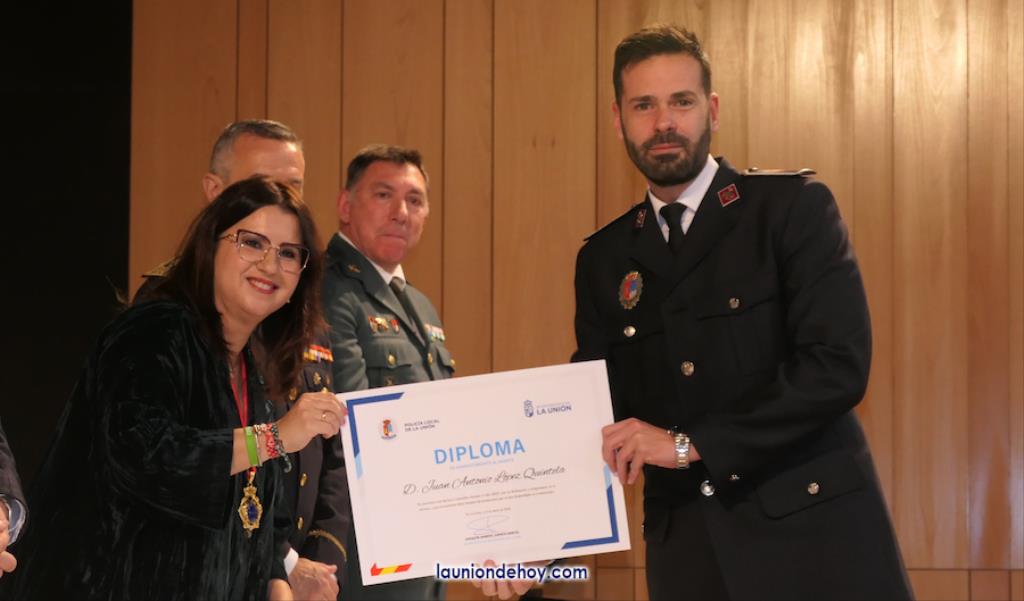 Antelo, en su alocución, metió comentarios críticos al gobierno central por la Ley de Amnistía, al igual que hizo después el alcalde. Al margen, Joaquín Zapata, además de explicar a los presentes que estaban en el centenario Liceo y difundir las excelencias del ahora Museo Minero, dijo sobre la Policía Local que es "una extensión del municipio en cada una de sus calles", afirmando que sus méritos "son conocidos or todos en los capítulos de seguridad ciudadana, tráfico, cumplimiento de ordenanzas y violencia doméstica", anunciando que en la mesa de negociación de esta próxima semana se sacarán dos plazas más de agente y que más adelante vendrán más. El alcalde ha solicitado en reiteradas veces, en las reuniones de la junta de seguridad, que La Unión tenga un cuartel de la Guardia Civil que no sólo esté abierto de lunes a viernes por las mañanas ("y sí 365 días al año") y más efectivos de la Benemérita. En su discurso volvió a reclamar esa mayor presencia de cuerpos nacionales para que los policía locales no tengan que asumir labores propias de la Guardia Civil y se limiten a ser apoyo en esos asuntos de seguridad ciudadana, pudiéndose centrar en su auténtico cometido, que va desde el cumplimiento de las normativas municipales al ordenamiento del tráfico. Joaquín Zapata vuelve a demandar una presencia de la Benemérita en La Unión, donde, actualmente y por poner un ejemplo, en las guardias del territorio rotan efectivos de El Algar, Fuente Álamo y La Unión para el amplio territorio de estas tres poblaciones. "Es muy necesario y de ahí nuestra constante petición al ministerio del Interior y a la delegación del Gobierno", reitera.