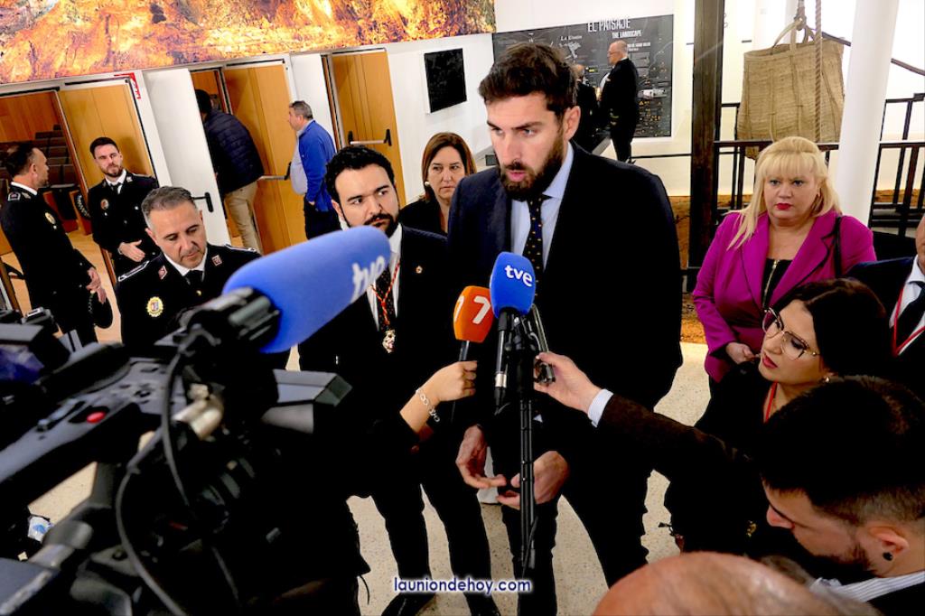 El vicepresidente del gobierno autonómico dijo que el ayuntamiento unionense "está haciendo los deberes poniendo los pocos recursos que tiene", para a renglón seguido anunciar que en breve va a tener amparo legal el uso de armas como las pistolas láser y una inversión para crear en la Región de Murcia una academia de policías locales. José Ángel Antelo lamentó que no se cuenta "con la lealtal institucional de la delegación del gobierno de España, con lo que sólo se pueden guiar por los datos del servicio de Emergencias 1-1-2, que reflejan un incremento de la delincuencia en el último año del 18%. "Guardia Civil y Policía Nacional lo pasan mal porque hacen lo que pueden", dijo, añadiendo que desde el gobierno regional "hemos hecho la mayor inversión de la historia con 19 millones de euros para policías locales y se ha triplicado lo destinado a material y en atender históricas reivindicaciones, lo que llevará también a la creación del CIF en El Esparragal de 12.000 metros cuadrados útiles y con un coste de 20 millones de euros. La seguridad es una inversión y no un gasto", expresó quien cerró con un "¡Viva España!".