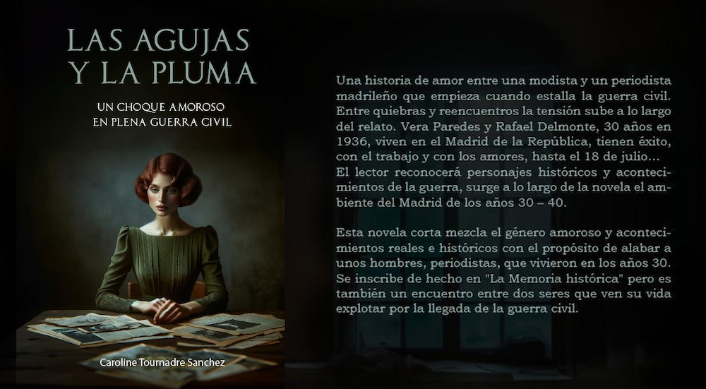 Caroline Tournadre Sanchez, escritora franco-española con domicilios en Francia y en Los Alcázares, ha escrito el libro 'Las agujas y la pluma' (Amazon), una historia de amor entre una modista y un periodista madrileño en el inicio de la Guerra Civil española que mezcla el género romántico con acontecimientos históricos, y en el que se hacen varias referencias a nuestra tierra.