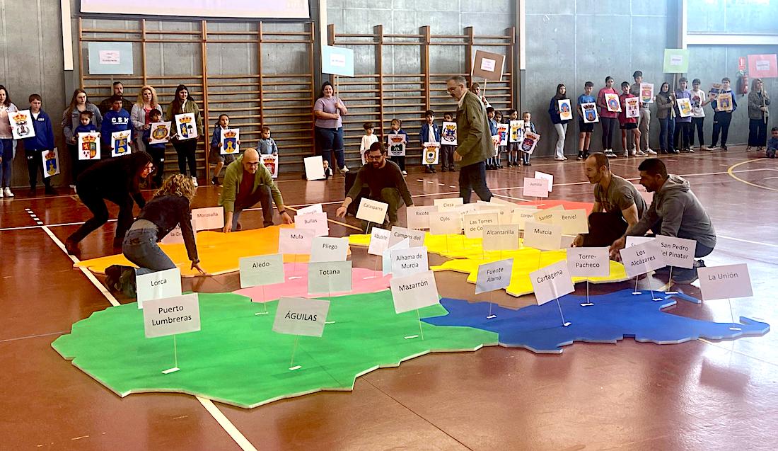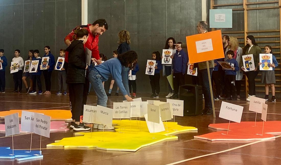 El acto de inauguración contó con los alumnos apareciendo sobre el parqué del pabellón por etapas y cursos llevando siluetas de los municipios de la Región de Murcia, los cuales fueron colocando, con ayuda del profesorado, por comarcas a modo de puzzle hasta completar el mapa autonómico, además de ubicar sus escudos.