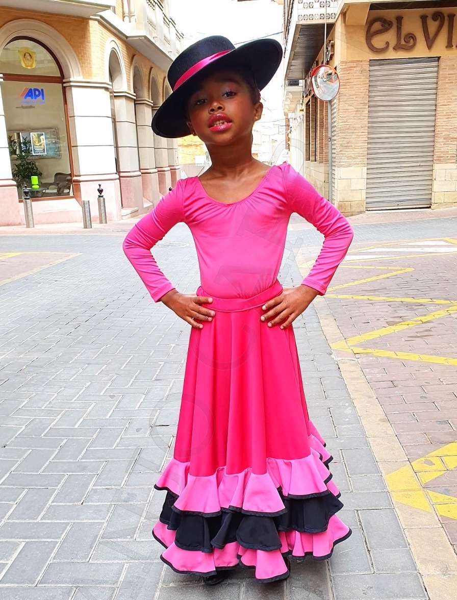 La foto muestra a la pequeñín flamenca Keisi con vestuario flamenco junto a su madre, Kenia, en la mañana del sábado, cuando se dirigían al Mercado Antiguo, donde tuvo lugar la fiesta del 'Día internacional de la danza' organizada por Artedanza.