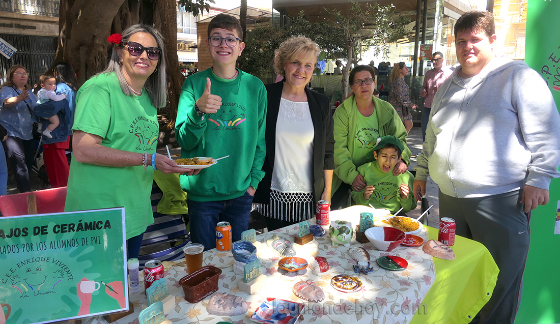 El estand del centro de educación especial Enrique Viviente estuvo el miércoles en el mercado artesana de las tradiciones de Roche y este fin de semana está en la glorieta de San Francisco de Cartagena junto a la cruz de mayo de la Hermandad de Romeros de San Ginés de la Jara.