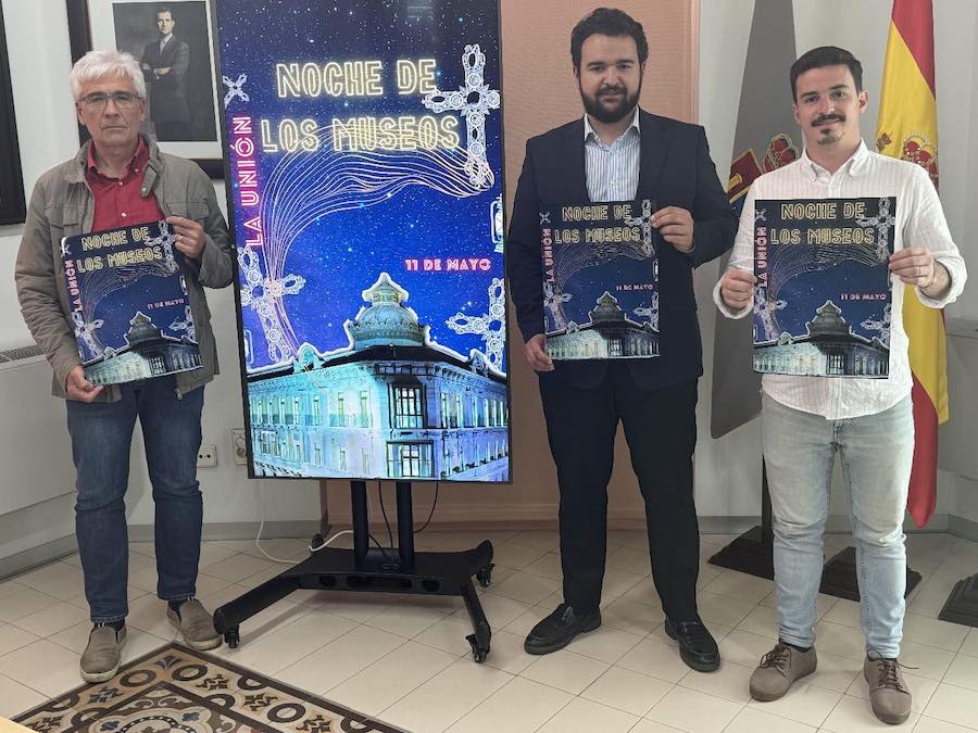El alcalde ha presentado hoy el cartel y la programación de la Noche de los Museos 2024, que se celebra el próximo sábado 11 de mayo en el municipio. Le han acompañado la concejal de Cultura, Aurora Ródenas, el concejal de Turismo, David Blasco y el responsable del Archivo Municipal y director del Museo Minero, Gonzalo Vicente Pagán.