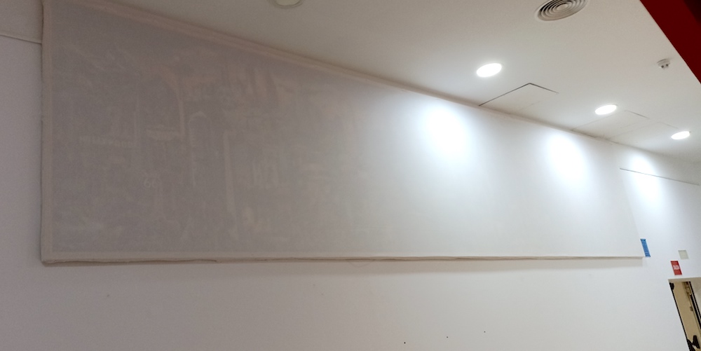 Nos extrañó verlo cubierto, pero pensamos que era algo puntual, pero al prolongarse esa situación, está redacción contactó con los vecinos de La Unión que lo habían elaborado, indicándonos José Antonio que fue cubierto a finales de julio por una exposición del Cante de las Minas y que desconocía el motivo de que siguiera oculto, por lo que estaba haciendo gestiones con los responsables. Ayer, este diario tuvo ocasión de trasladar el asunto al alcalde, Joaquín Zapata, quien nos explicó que el motivo de ser tapado es que bastantes de los artistas que exponen en ese espacio así lo solicitan para que no se desvíe la atención sobre sus obras y que ya había hablado con la familia, siendo la solución quitar la tela y poner una cortina corredera que permita taparlo cuando lo solicitan los que exponen y descubrirlo cuando no hay muestras o no se efectúa esa petición.