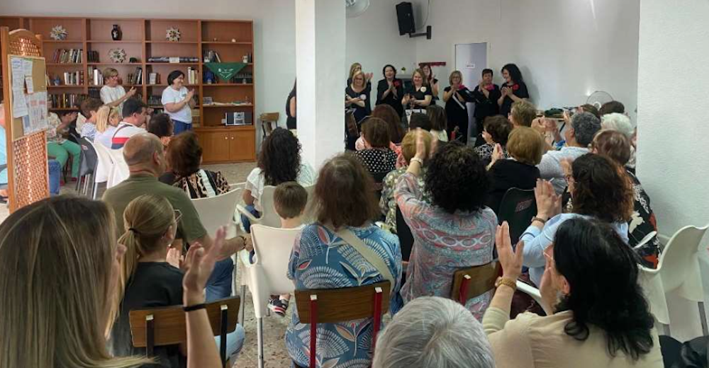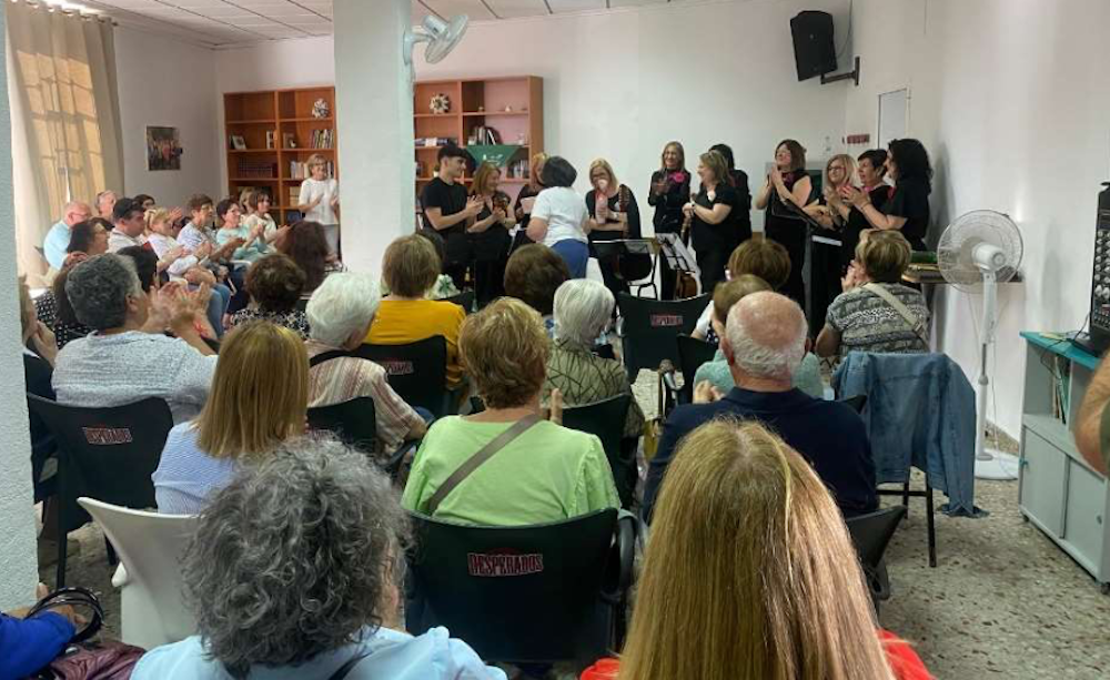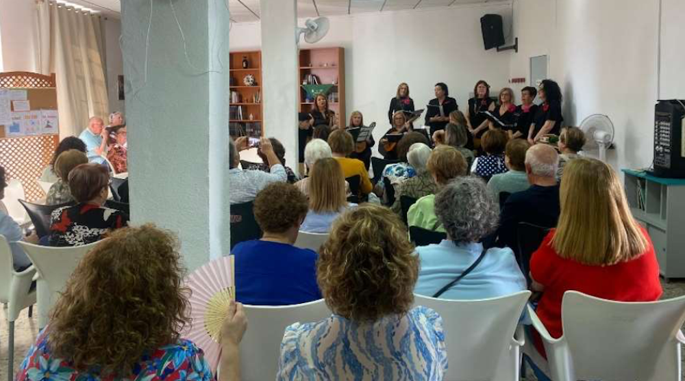 El grupo musical femenino unionense ofrece una brillante actuación en la sede de las asociaciones de vecinos y de amas de casa de la villa en una actuación encuadrada en los actos del primer aniversario de la puesta en marcha de ambos colectivos.