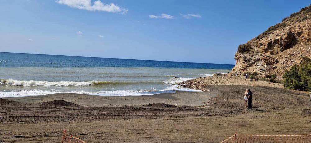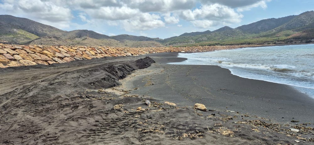 Además, nos hemos encontrado con la arena tirada sobre las rocas originales, generando un color chocolate en el agua del mar y matando todo ser incipiente con vida.