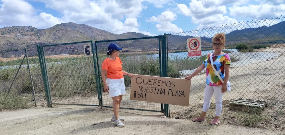'Portmán vivo' comunica que un grupo de vecinos y simpatizantes de la plataforma se acercó este fin de semana a la playa de San Bruno "para darse un chapuzón, pero se encontraron con una situación que lo impedía", por lo que optaron por no hacerlo y exigir soluciones.