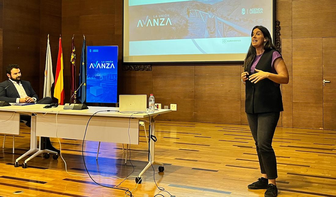 El alcalde ha presentado hoy el Plan de Acción de la Agenda Urbana de La Unión, un documento estratégico para planificar las mejoras del municipio de aquí a 2030. Le ha acompañado Fabiola Sánchez, representante de la consultora Eurovértice, empresa adjudicataria del contrato para el desarrollo de la Agenda.