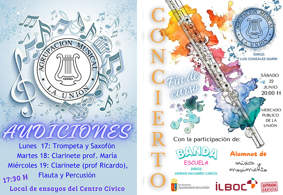 La Agrupación Musical La Unión llevará a cabo desde el próximo lunes las audiciones de diferentes instrumentos dentro del programa de cierre del ejercicio 2023/24, que culminarán el sábado con un concierto.