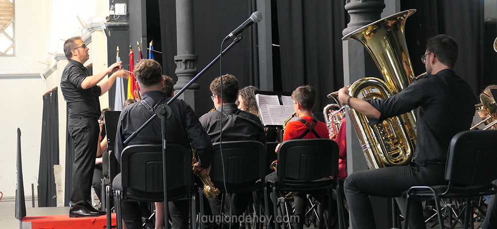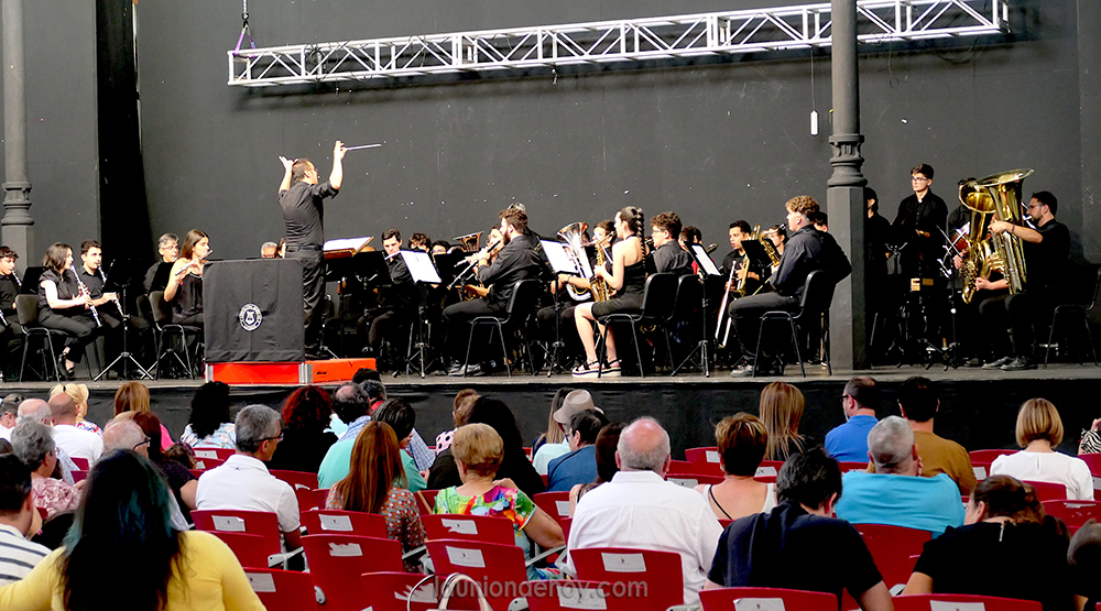 Agrupación Musical La Unión llevó a cabo ayer el cierre de la escuela de música en el Mercado Antiguo, donde actuaron los alumnos del curso bajo la dirección de Adrián Navarro García y la banda titular, con la batuta de Luis González Marín.