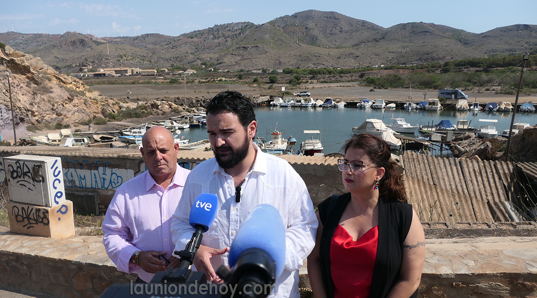 En la foto se observa al alcalde y a los ediles Isabel Egea y Damián García ante el micrófono y cámara del centro territorial de Televisión de España. Detrás se puede ver la vertiente de la sierra minera que da a Portmán. Al respecto, Joaquín Zapata recuerda que su recuperación fue la primera que comenzó a pedirse y espera que la restauración de la sierra minera no se quede sólo en la vertiente que da al Mar Menor y continúe por la zona mediterránea.