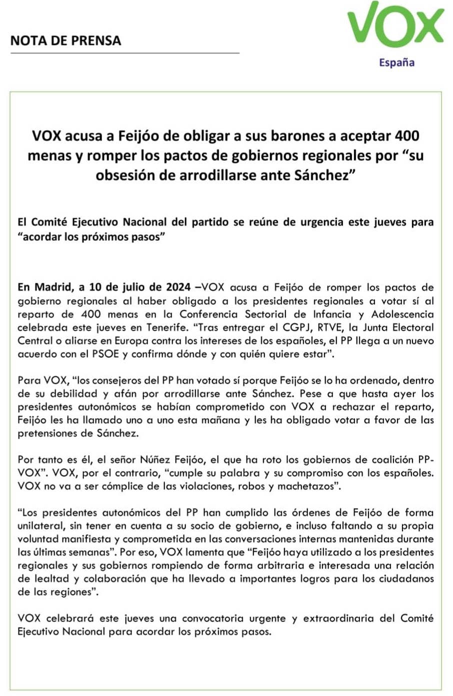 Santiago Abascal (foto adjunta) va a proponer esta tarde (18.30 horas) en el comité ejecutivo nacional del partido verde que se rompan los acuerdos con el Partido Popular en los gobiernos regionales. Esta mañana, Antelo, líder regional, no ha acudido a la junta de gobierno de la Comunidad Autónoma. Si esta ruptura sale adelante, ¿afectará a los 'matrimonios de conveniencia' municipales como sucede en La Unión? A nivel de ayuntamientos no se ha dicho nada, pero la duda existe.