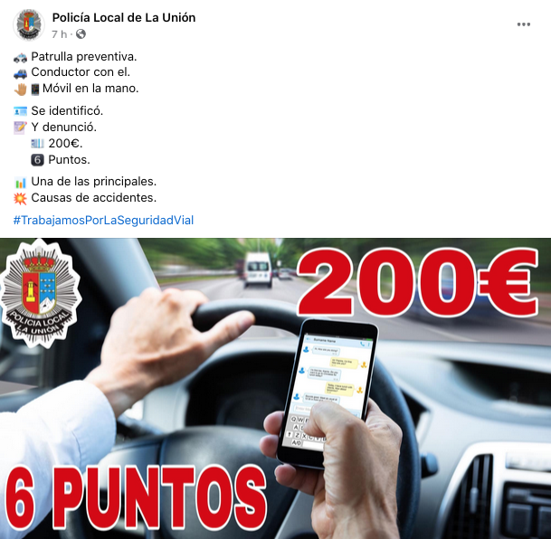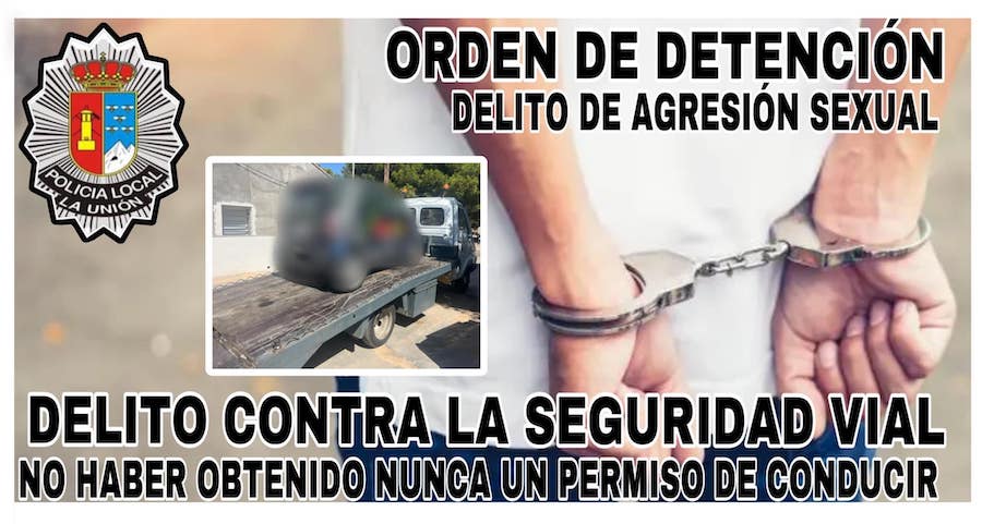 Una patrulla de la Policía Local de La Unión detectó a un conductor que llevaba un vehículo sin haber obtenido nunca el permiso de conducir y que había cometido un delito contra la seguridad vial. Además, resulta que esta persona se había saltado una orden de detención por agresión sexual, por lo que fue trasladado a la Guardia Civil. Otras actuaciones recientes del cuerpo municipal han sido sanciones de 200 euros por conducir mientras se utilizaba el móvil y por ir en moto con el casco en el brazo.