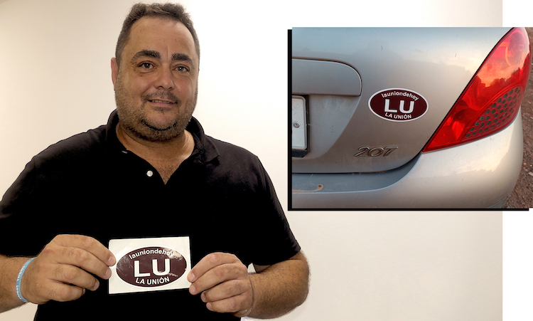 Daniel Cano, concejal de Defiende La Unión, nos pidió la pegatina de 'LU' y ya la tiene colocada en su turismo. Si tú también quieres ponerla en tu vehículo, cuando nos veas no dudes en pedirla.