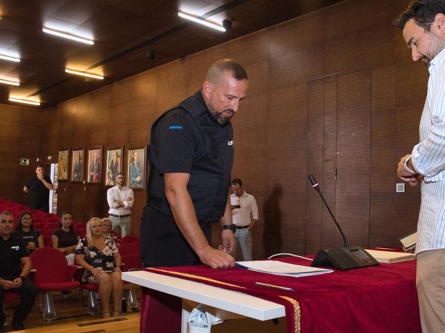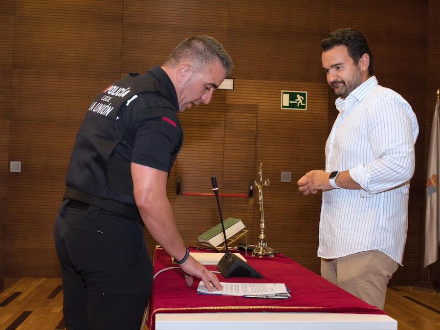 El alcalde presidió en el salón de plenos la toma de posesión de dos nuevos agentes del cuerpo municipal de La Unión y ratificó el compromiso de ampliar la pantilla en pos de mejorar "la respuesta ante emergencias y aumentar la presencia policial en las calles", expresó.