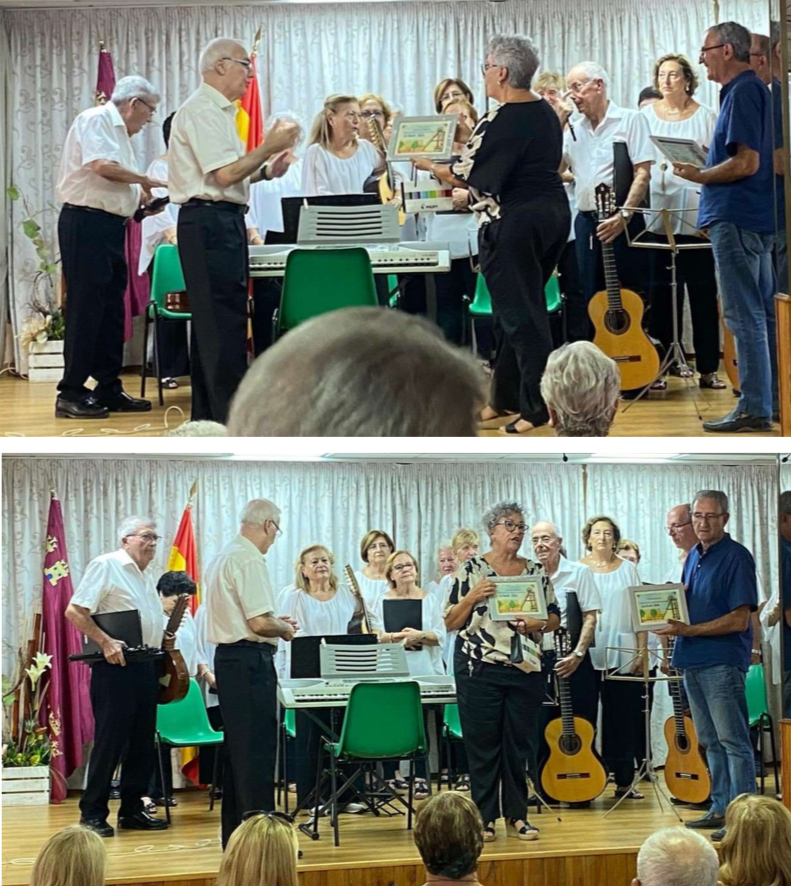 La actuación finalizó con una fuerte ovación que retumbó en local social, dejando claro el cariño y reconocimiento hacia los integrantes del coro y la rondalla que manifestaron los asistentes a este evento. Al término del acto, la Directora del Centro, Conchi Pagan, y el presidente de la Junta de Participación, José Luis Parrado, subieron al escenario para agradecer su dedicación y esfuerzo. En un gesto de gratitud, les hizo entrega de un cuadro pintado por el Taller de Pintura del centro, simbolizando el aprecio del CSPM por su incansable labor artística.