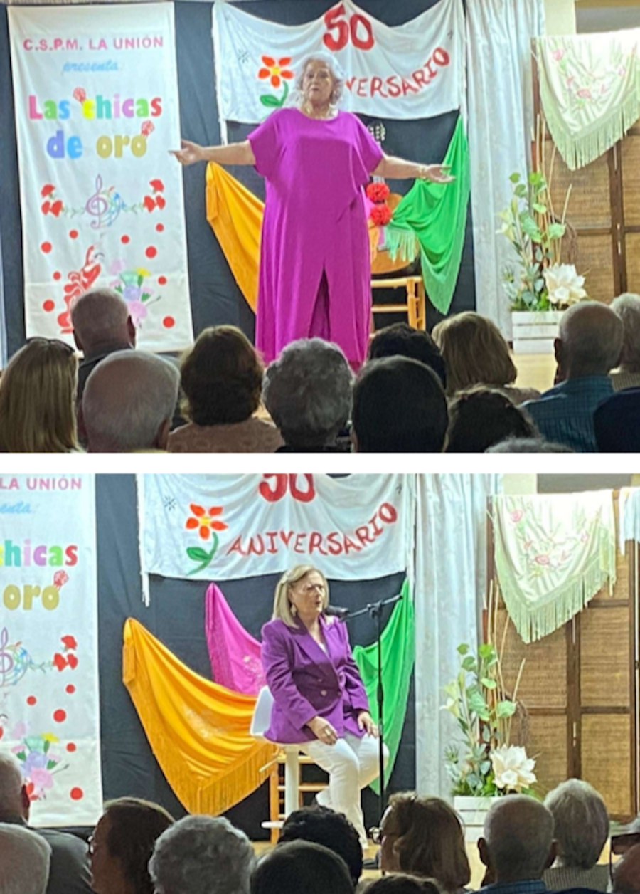 En esta ocasión, "Las Chicas de Oro" contaron con el apoyo de Reinaldo, quien estuvo a cargo de la decoración del escenario, y de Paco, responsable del sonido. Ambos son socios del centro social y, con su habitual amabilidad, ofrecieron su valiosa ayuda para hacer posible el espectáculo de esta tarde.