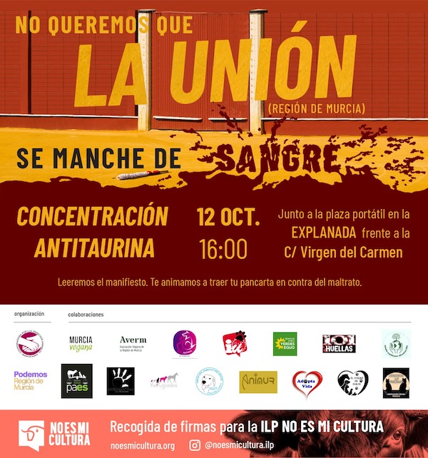 Tras hacerle saber al Ayuntamiento y a la iglesia el profundo rechazo que este tipo de eventos genera a la mayoría de la población y solicitar formalmente información detallada sobre el gasto que supone para el Ayuntamiento de La Unión la colaboración en el festival taurino programado dentro del marco de las Fiestas Patronales en honor a Nuestra Señora del Rosario, los ciudadanos y ciudadanas han expresado su más profunda indignación y dolor.