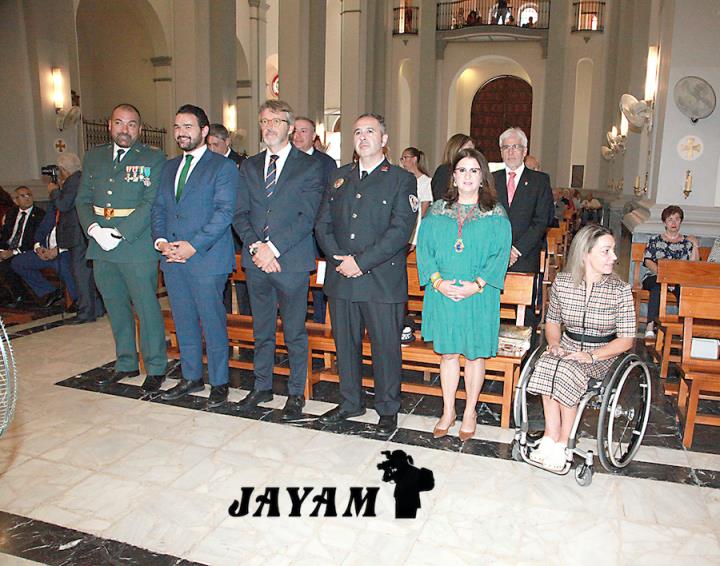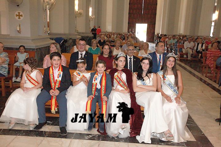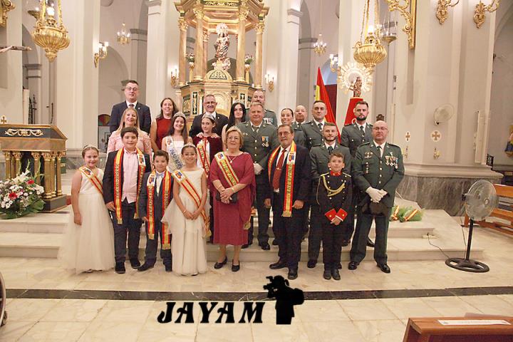 La misa, que ha incluido las ofrendas, ha sido oficiada por el párroco, Ginés Luis Vicente. A su conclusión, a la salida de la iglesia, se ha llevado a cabo el tributo a la bandera de España, siendo izada mientras sonaba el himno nacional.