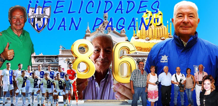 Felicitaciones para nuestro querido Juan Pagán Rivas, quien alcanza hoy la edad de 86 años con una vitalidad tan envidiada como cariño él procesa a su tierra natal de La Unión y al fútbol minero, como queda representado en este montaje gráfico especial para este día que ha preparado Juanjo Carrillo.