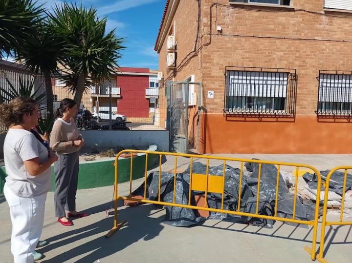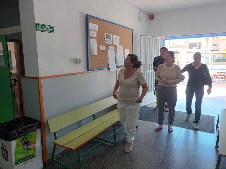 La concejal de Educación y Empleo, Aurora Ródenas, acompañada de la concejal de Festejos y Asociaciones, Loly Mendoza, han visitado los trabajos realizados en el CEIP El Garbanzal, por los alumnos-trabajadores del Programa Mixto de Empleo y Formación “Construcción sostenible-La Unión”.