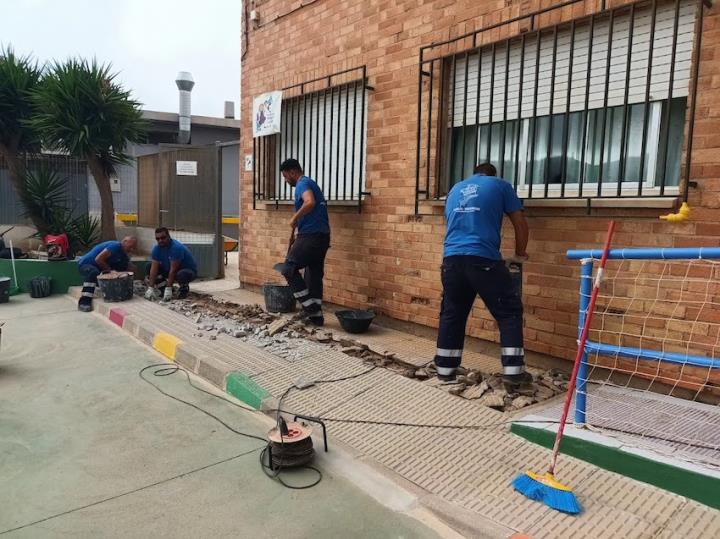 Otra intervención ha consistido en pintar el vestíbulo y el distribuidor de la planta superior, además de un aula. En el pabellón de infantil se ha actuado con tirolesa, hormigonando alcorques rotos y colocando bordillos en los alcorques para seguridad de los niños en el parque infantil.