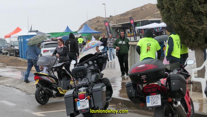 La edición de 2023 se estrenó en el polígono industrial de Lo Bolarín para facilitar la presencia de visitantes, pues se trata de un evento que cada año atraía a más moteros. Fue un éxito y este año los cálculos apuntaba a mil o dos mil asistentes, pero el agua (ansiada para muchos, pero siempre inoportuna) apareció y la cifra fue bastante inferior, aunque pudimos comprobar que hubo muchos que acudieron pese a la situación climática, bastantes procedentes de tierras por donde no llovía, como Murcia o Mazarrón, pero que no dieron la vuelta al llegar al Campo de Cartagena y comenzar a recibir las gotas.