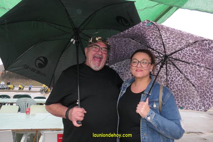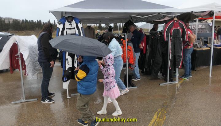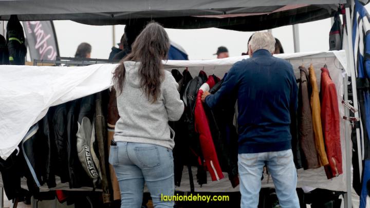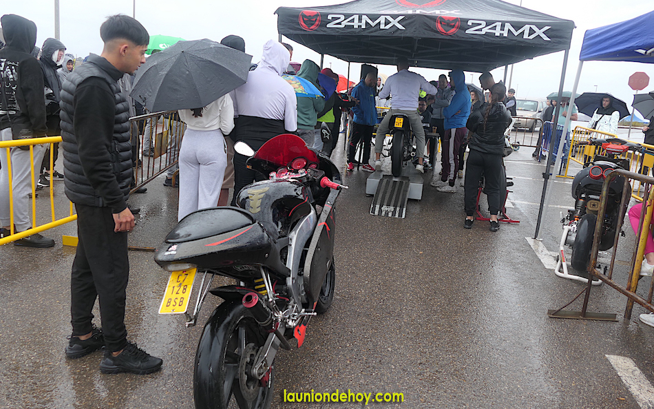 La animación desde el gran remolque de trailer mantuvo la vitalidad del año anterior, al igual que la aportación musical de ‘DJ Rául’ y también hubo entrega de premios a los mejores en el concurso que estrenó banco de potencia. También hubo algunas tiendas de vendas de prendas y objetos moteros. No fue lo mismo, pero nadie se rindió ante la lluvia. Además, el presidente del motoclub, Carlos Camacho, ordenó que se quitasen las vallas y, dado que la presencia de asistentes era inferior al año anterior, los que quisiesen pudiesen llegar hasta el epicentro de la actividad, donde la plancha no dejó de producir sabrosos productos gastronómicos y se preparó un buen arroz (pinchar aquí). Lo que no podemos informar es si al final hubo exhibiciones, pues en el momento que pasamos para elaborar este reportaje la situación estaba complicada y no se sabía qué iba a pasar en un domingo donde hubo más paraguas que cascos.