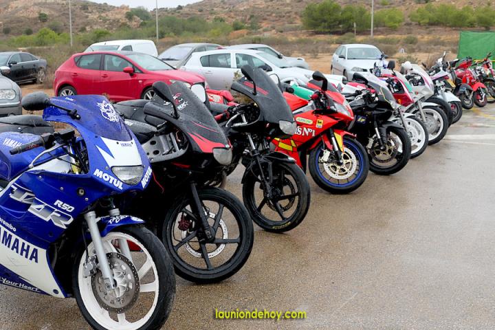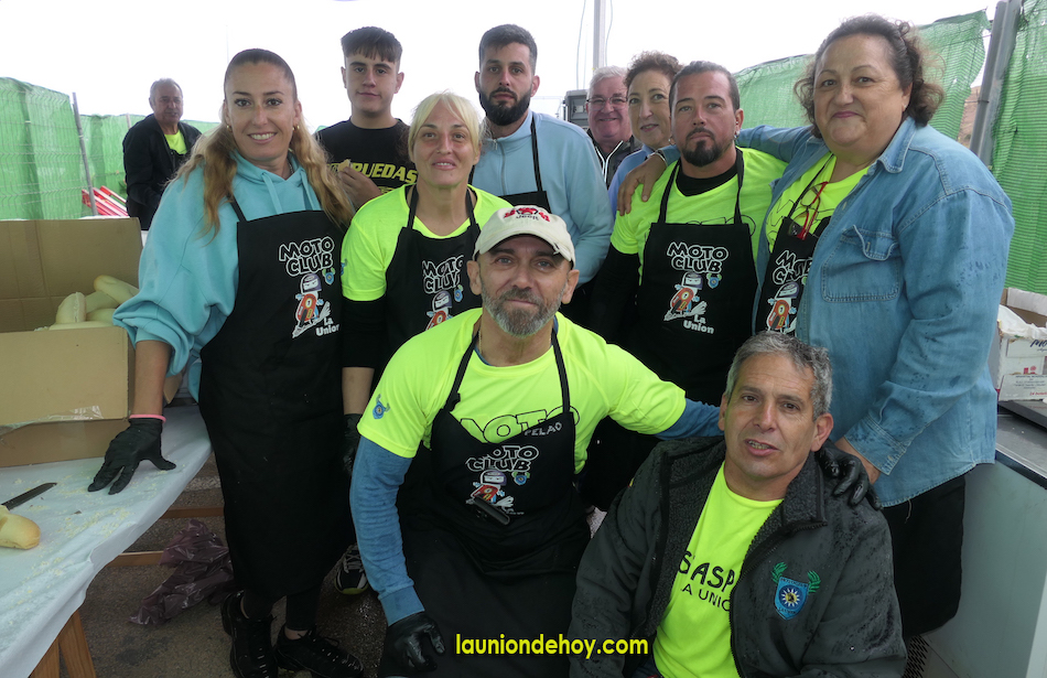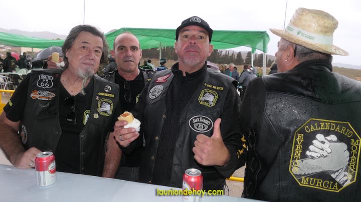 Cuando se le echa agua al motor, la avería no hay quien la evite en una moto. Algo parecido se podría decir de celebrar un motoalmuerzo con una insesante agua del cielo sobre las cabezas y las ‘monturas’, pero en este caso el ahínco de los integrantes del Motoclub de La Unión evitó el desastre total, pues el voluntarioso equipo (bajo estas líneas una representación del motoclub) se esforzó al máximo para plantar cara a la lluvia y sacar adelante todo lo que se podía de lo preparado.