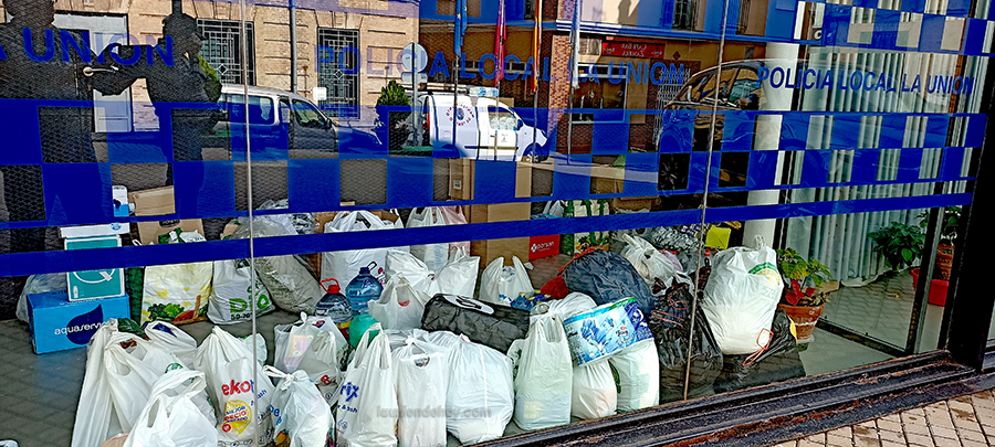 El cuartel del cuerpo municipal de seguridad de La Unión es un punto permanente las 24 horas para recoger productos para enviar a los afectados por las riadas. Se piden alimentos, productos de higiene y herramientas para retirar el barro, pero que, de momento, se aparque las aportaciones de mantas y prendas.