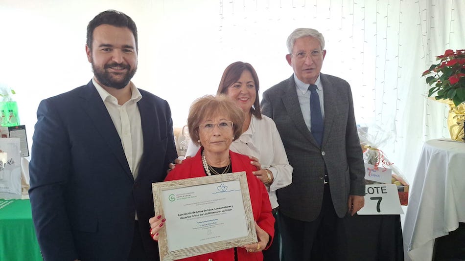 Para finalizar, la presidenta entregó, con la colaboración del alcalde de La Unión, unos diplomas de agradecimiento a las asociaciones que han ayudan a la AECC y también ha entregado una placa de reconocimiento y agradecimiento a José María Alcalde Méndez, anterior presidente por la gran labor que hizo durante los muchísimos años que estuvo al frente de la asociación.