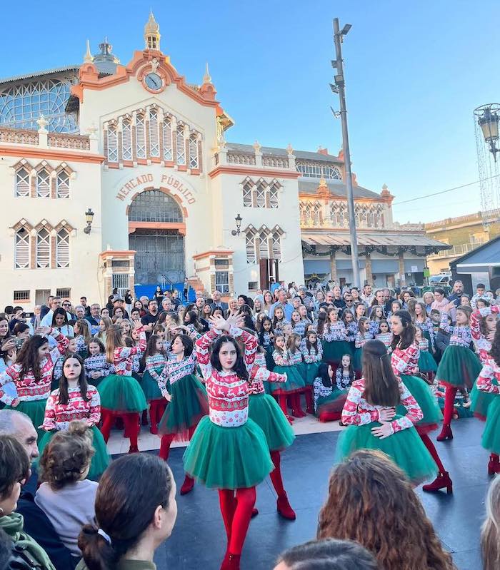 ArteDanza ha ofrecido una atractiva exhibición de baile con tintes navideños durante esta tarde en la 'Feria Outlet' de la plaza de Joaquín Costa de La Unión.