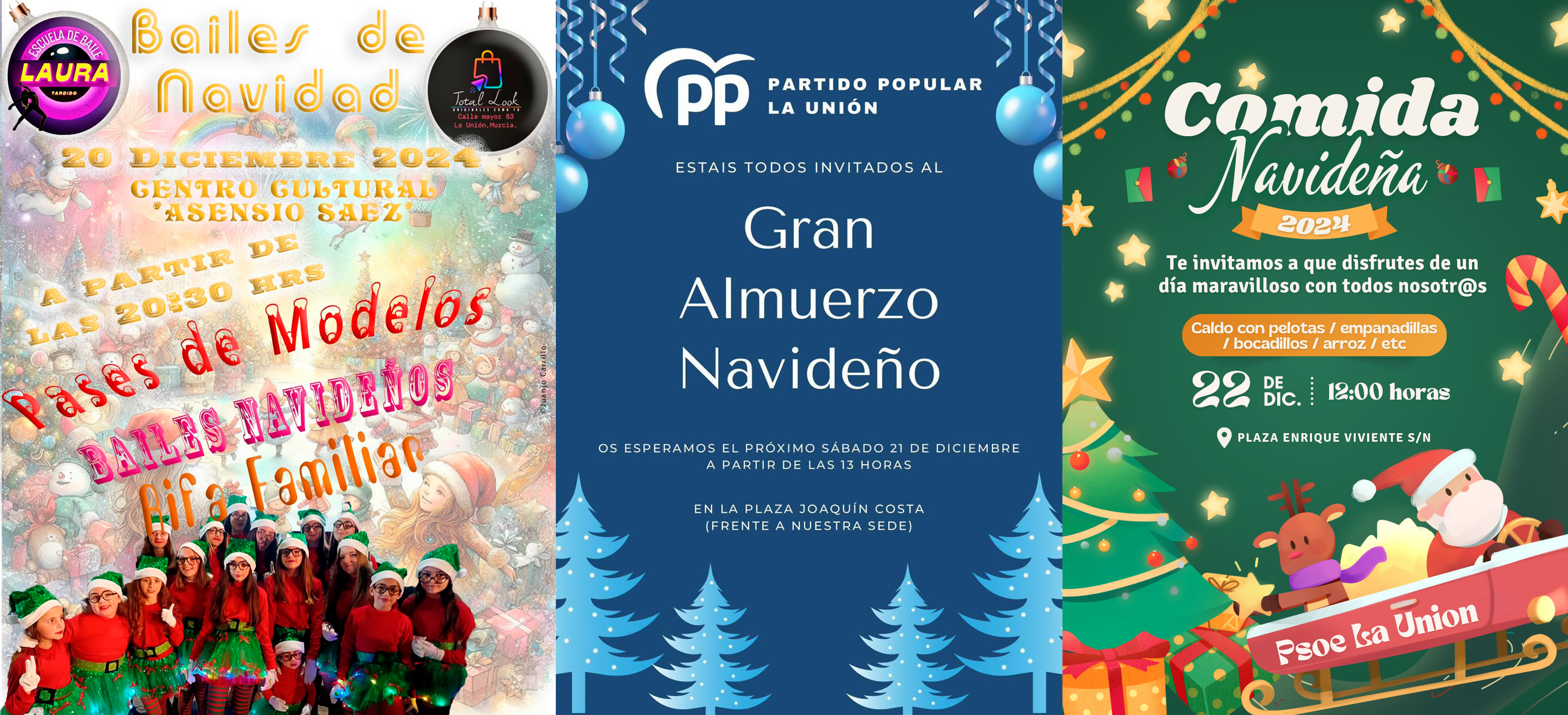 - Comida navideña del PSOE de La Unión en la plaza Enrique Vivienda, junto a la sede socialista. 12 horas