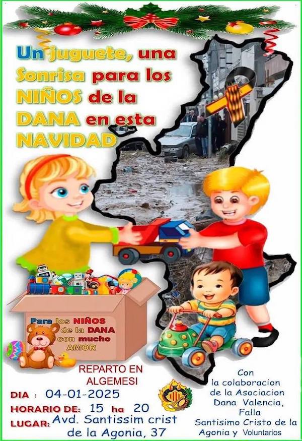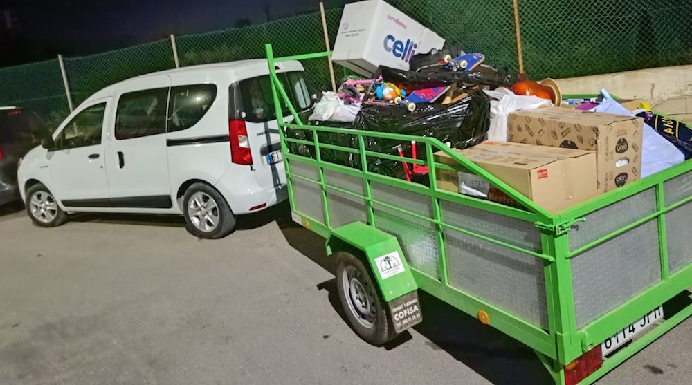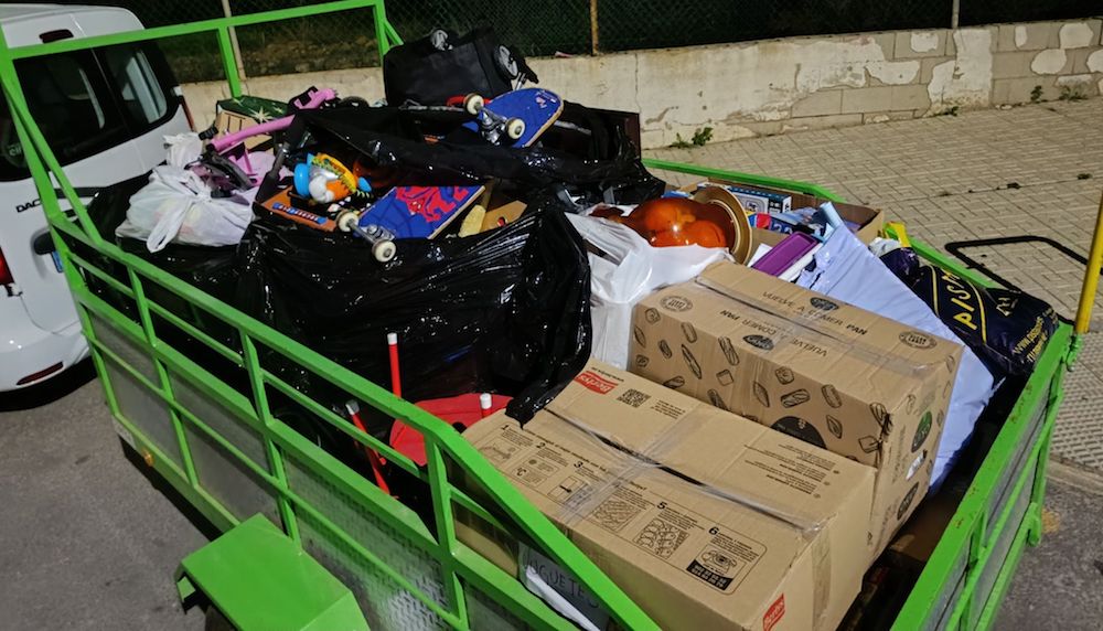 Daniel Cano, Santiago Valverde y Gabi Valverde han llenado de juguetes un carro y un maletero de furgoneta en una iniciativa que ha llevado a cabo para ayudar a los niños de familias afectadas por las riadas de octubre en la Comunidad Valenciana, con una recogida en la que han contado con la colaboración de varios comercios y entidades.