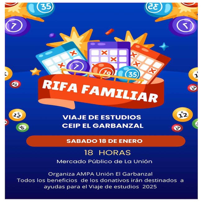 Las asociación de padres del colegio de El Garbanzal organiza el bingo en la tarde del 18 de enero en el interior del Mercado Público de La Unión, siendo los beneficios destinados al viaje de fin de curso de los estudiantes.