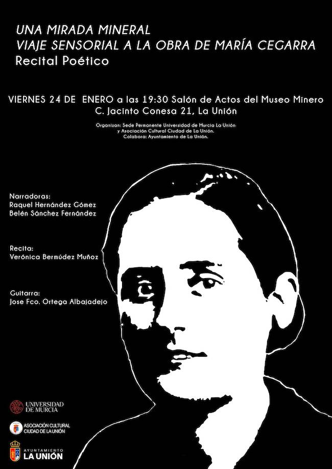 'Una mirada mineral. Viaje sensorial a la obra de María Cegarra' es el título de la actividad que el salón de actos del centro museístico acogerá el viernes 24 organizado por la sede permanente de la Universidad de Murcia y por la asociación cultural 'Ciudad de la Unión', con la colaboración del ayuntamiento.