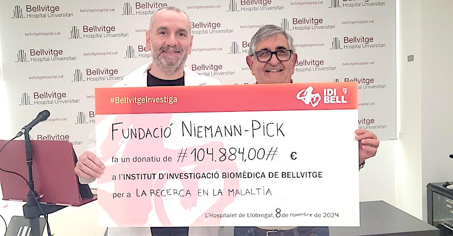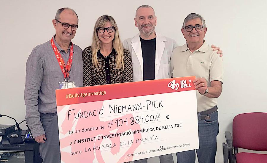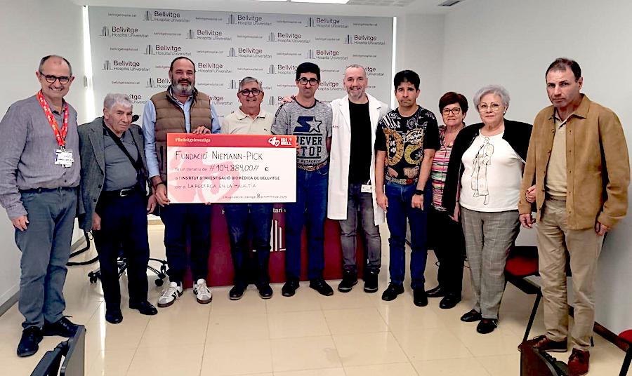 La pregunta siguiente es esperada: ¿A dónde va ese dinero?. "Todo, absolutamente todo, a la Fundación", responde de forma tajante, explicando que el dinero que se recauda se va destinando a la investigación, a las ayudas y soporte para afectados y familiares y para la divulgación. Carmelo también nos relata diversas iniciativas muy variadas que se llevan a cabo en diferentes puntos de España para recoger dinero, que se suma a otras fuentes de financiación, como la venta de lotería y las aportaciones de los socios y empresas colaboradores, pues siguen sin recibir subvenciones públicas, aunque sí las solicitan, como la que han llevado a cabo ante los senadores y diputados del parlamento español para ayudar al Hospital Universitario Bellvitge de Hospitalet (Cataluña), epicentro de los avances que en España se llevan a cabo con la Enfermedad de Niemann-Pick. "Ahí es donde se encuentra nuestro doctor, Jordi Garcón, y donde se lleva a cabo el ensayo clínico de la parte connitiva. El siguiente paso será el ensayo de la parte motora", indica, apuntando que la investigadora de la Fundación es Lola Ledesma, doctora en el Hospital Severo Ochoa de Madrid. En la foto de la entradilla de este artículo se observan a ambos en el centro del cuarteto de personas que posan.